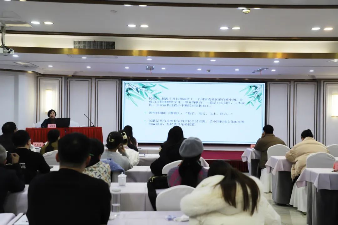 培训班邀请了省音协副主席、安徽师范大学音乐学院副院长、教授程炳杰,省音协副主席、安徽大学艺术学院副院长、教授田雅丽分别为全体学员作了题为《新时代音乐工作者的责任与担当》和《徽音传天下》国家级非遗安徽民歌赏析专题讲座。